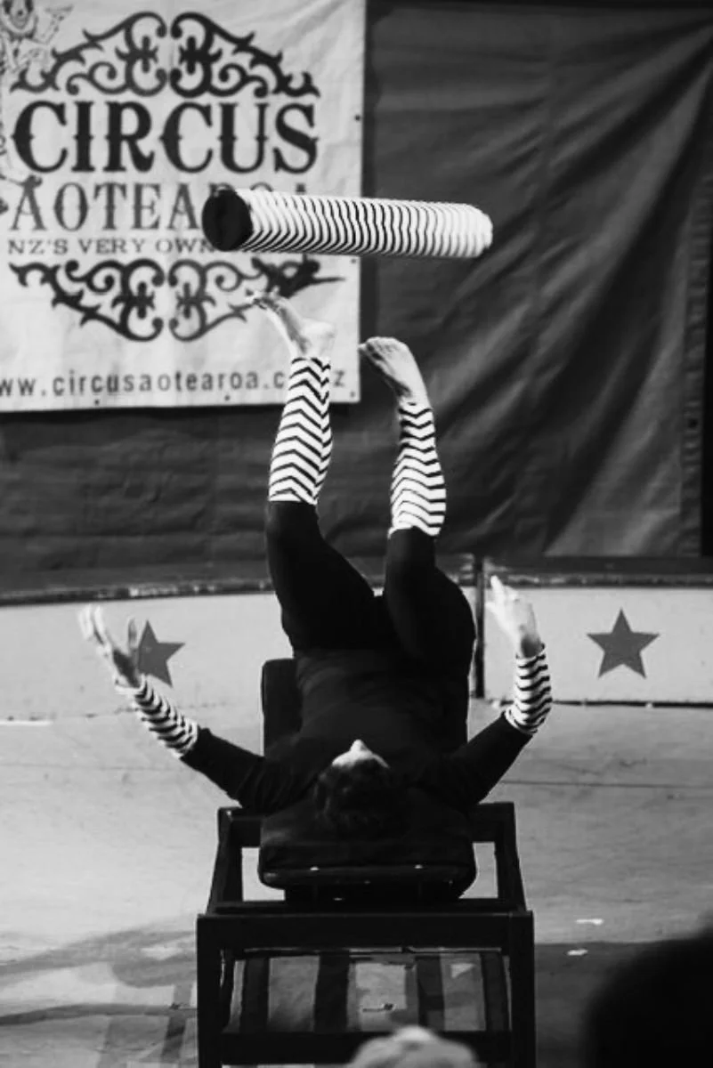 Irene has been performing and teaching various circus skills for over 25 years. Her passion lies with object manipulation like juggling, hula hoops and aerial acrobatics. She has been performing stilt and street theatre, as well as juggling and firedance in her native Austria and other European countries. Since moving to New Zealand in 2000 Irene has finished a diploma in Circus Arts at Christchurch Polytech where she specialized in swinging trapeze and other aerials. For the last 14 years she has been performing in her very own circus – Circus Aotearoa – which she runs together with husband Damian and son Matthias. Irene is also teaching circus skills and yoga-based movement to people of all ages in rural Raglan. Her fascination with circus is never ending as there are always new things to explore and learn – regardless of age and abilities.